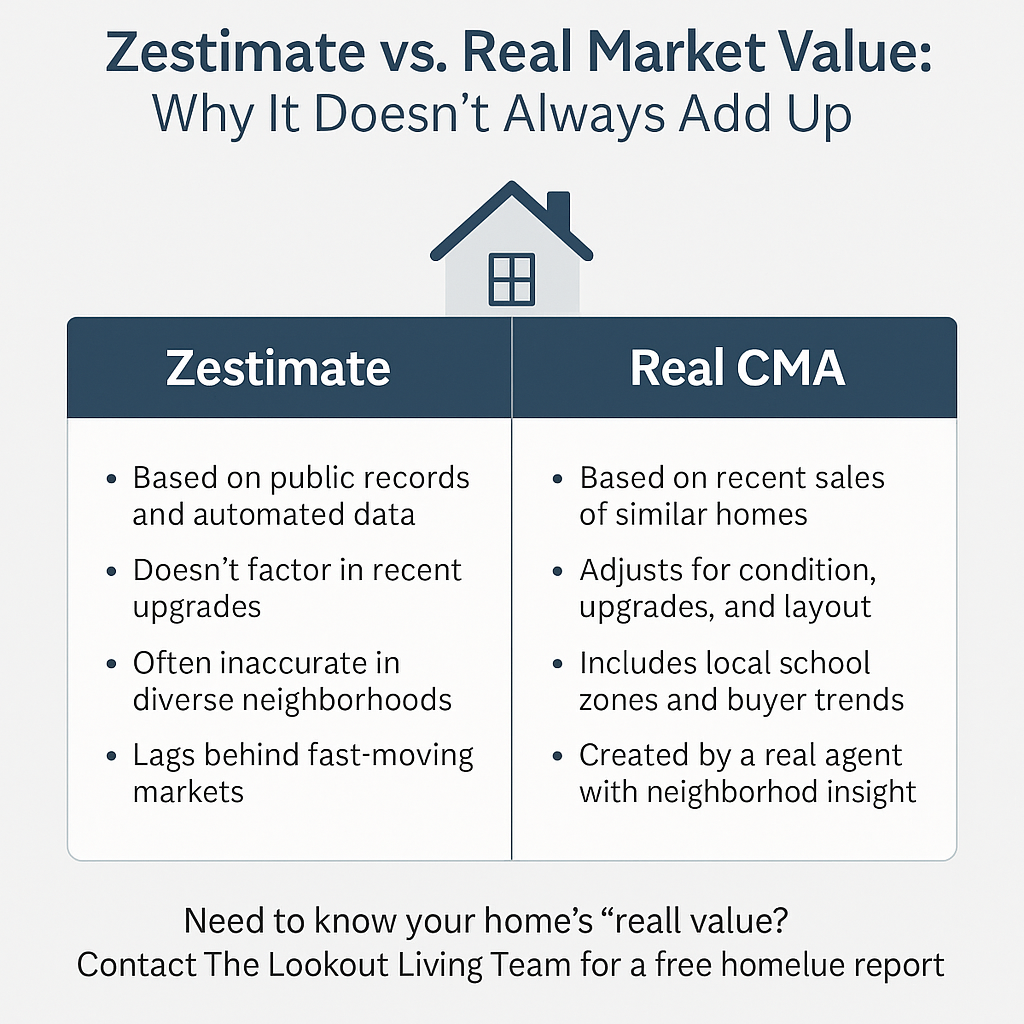 So, How Do You Find Out What Your Home Is Worth? If you are seriously thinking about selling, refinancing, or just want a clear picture of your equity, you will need A Comparative Market Analysis (CMA). This is a detailed, hyper-local review of Recent comparable sales, Active competition on the market, Current buyer demand, and Adjustments for your home’s features. It is not automated, it’s created by a real person (hi, that’s us 👋) who knows your neighborhood inside and out. Sometimes, it takes walking through your home, or at least seeing detailed photos, to factor in condition, upgrades, and layout that all may affect marketability and value.